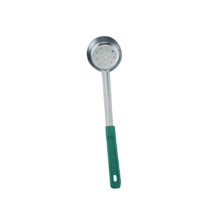 4 oz. One-Piece Stainless Steel Perforated Portion Control Spoon with Green Handle